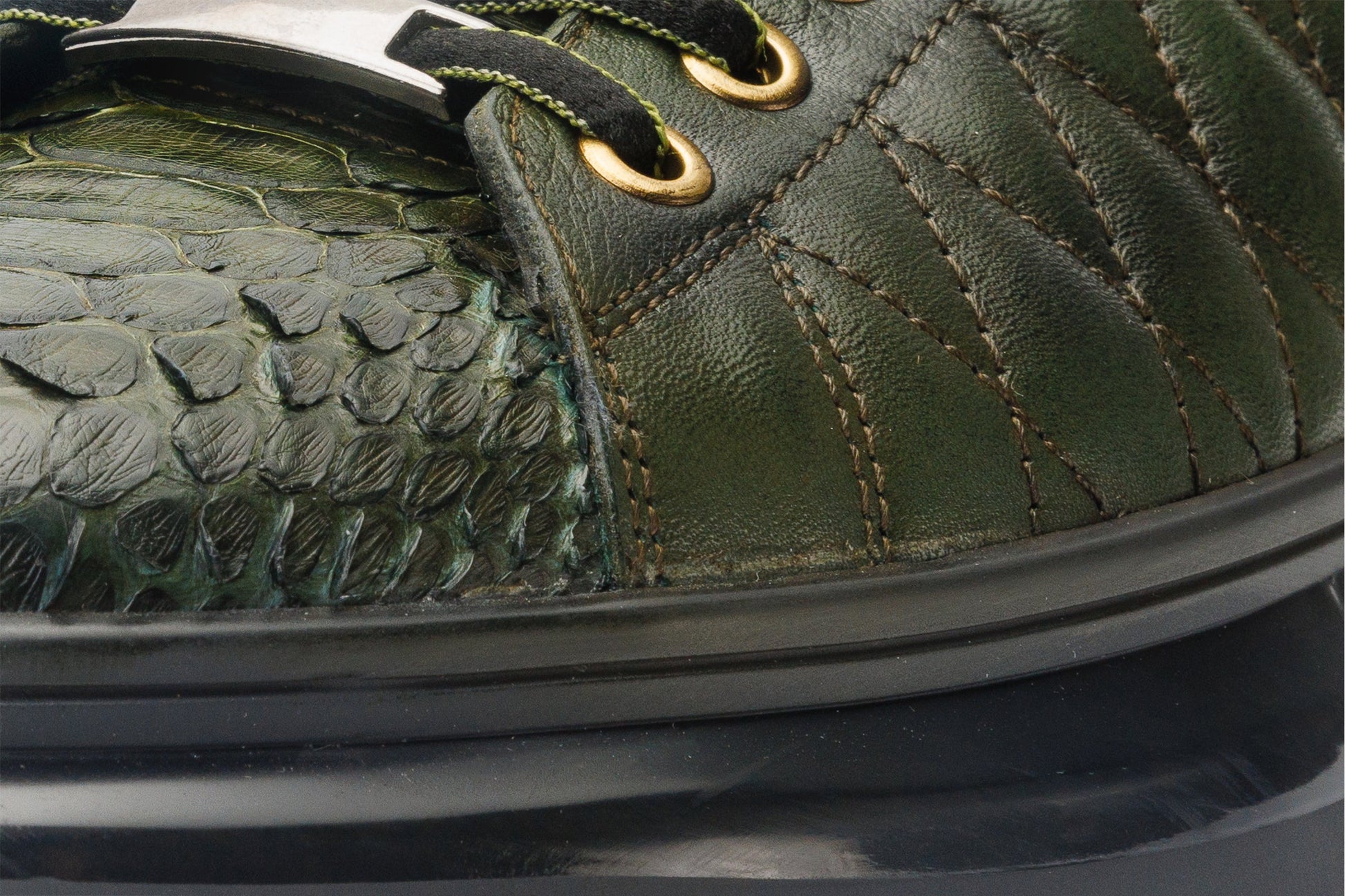 1. High-Quality Calf and Genuine Python Leather: Adler sneaker is meticulously crafted from premium calf leather and adorned with genuine python leather on the toe and heel, creating a visually stunning effect.
