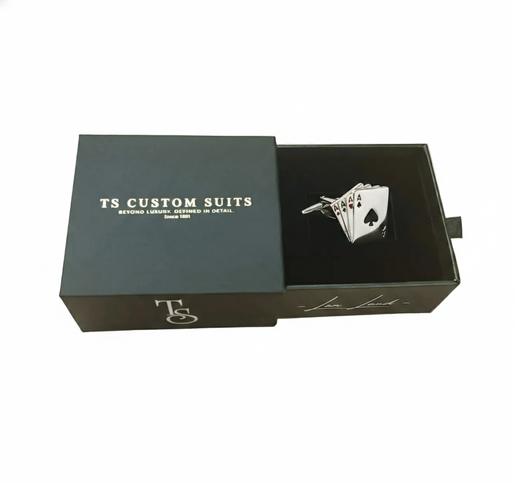 Each pair of High Roller cufflinks arrives housed in a handsome decorative presentation box, making them an ideal choice for commemorating tournament victories, honoring memorable Vegas trips, or celebrating shared passion for poker and casino gaming. From the precise detailing of the playing cards to your choice of silver or gold finish, you receive a truly distinguished piece that perfectly aligns with our exacting standards of quality and refined elegance. The thoughtful packaging transforms these cufflinks into a memorable gift that conveys both thoughtfulness and impeccable taste, perfect for bachelor parties, groomsmen gifts, poker enthusiasts, casino trips, or any card player's special occasion.