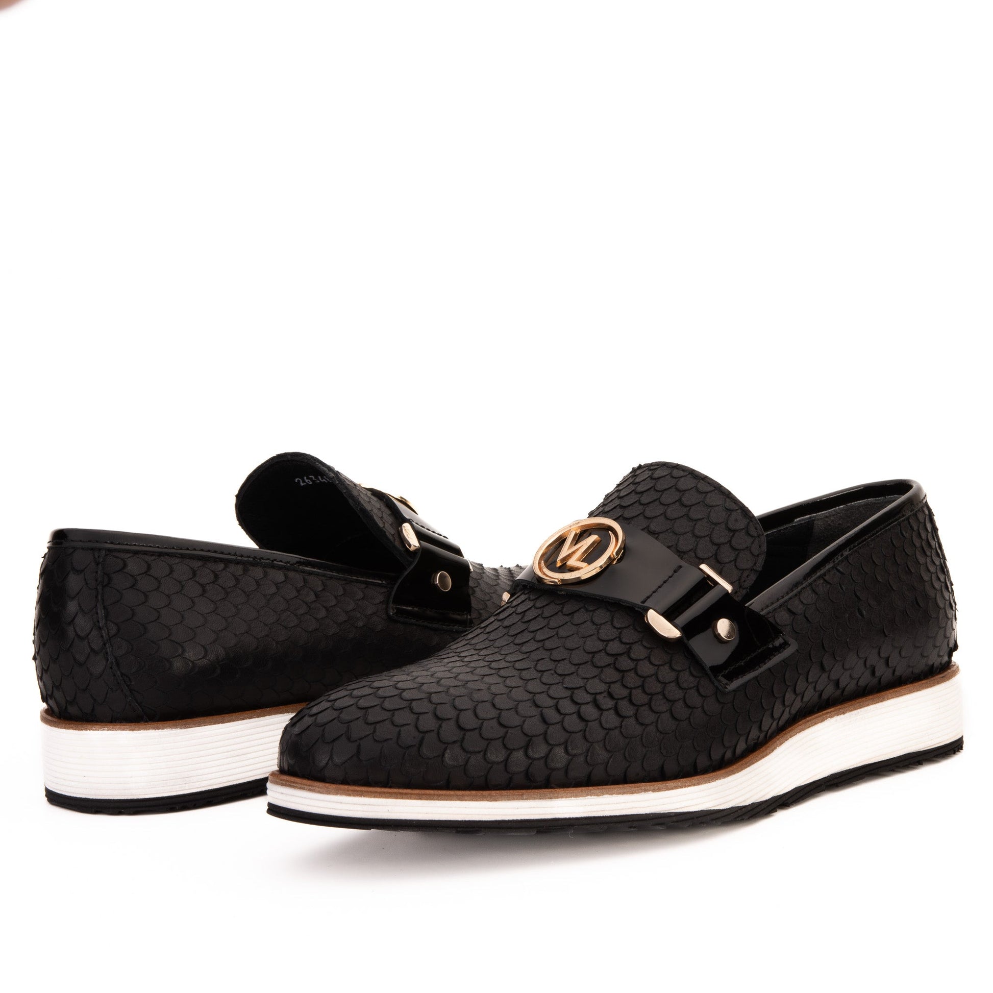 - Crafted from premium black leather with a python-textured finish, offering a bold and luxurious look.