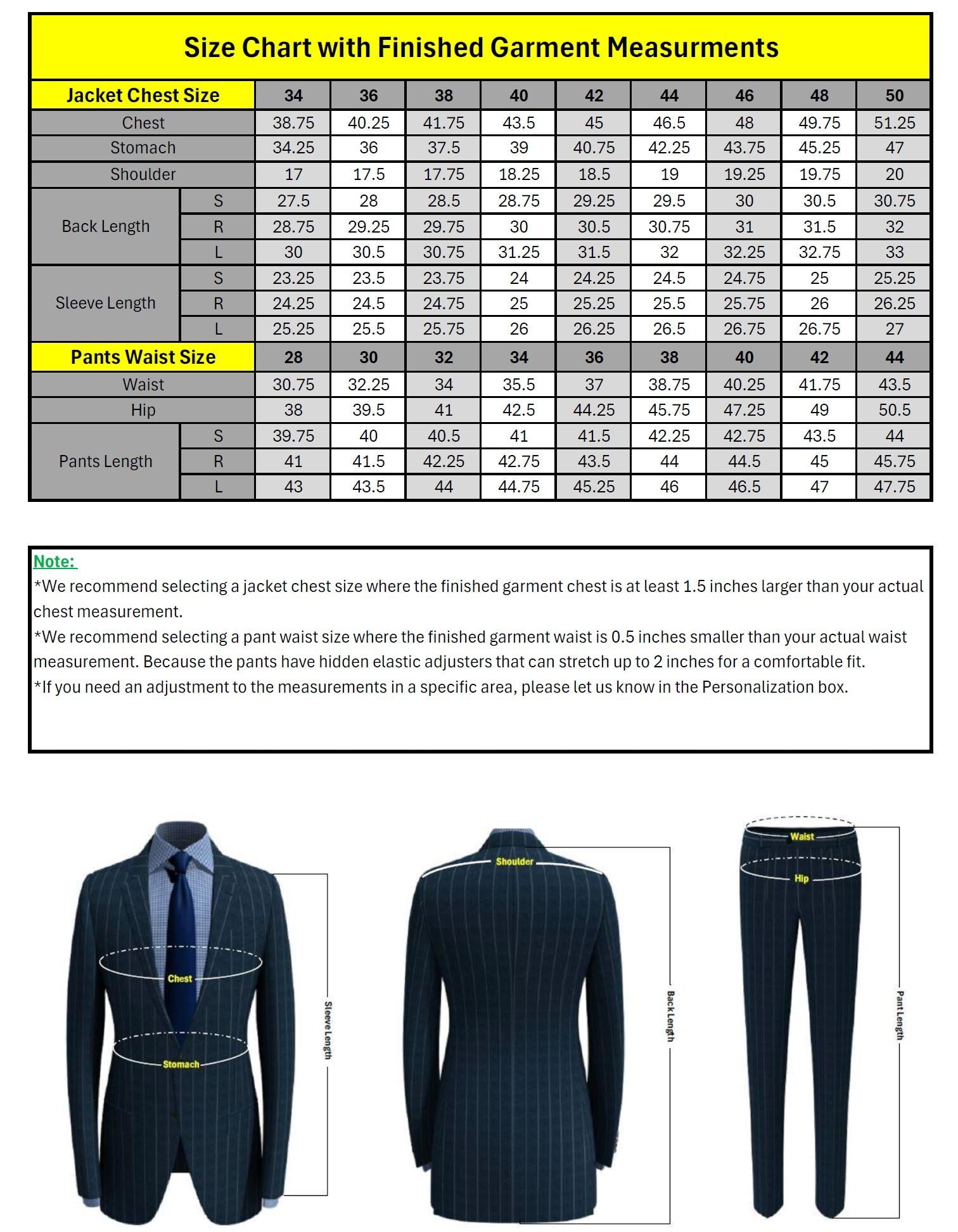 3-piece custom suit which is comprised of the suit jacket, vest, and the suit pants. Customization options are also included. Let us know how you would like to customize it (buttons, lining, different fabric colors, etc).