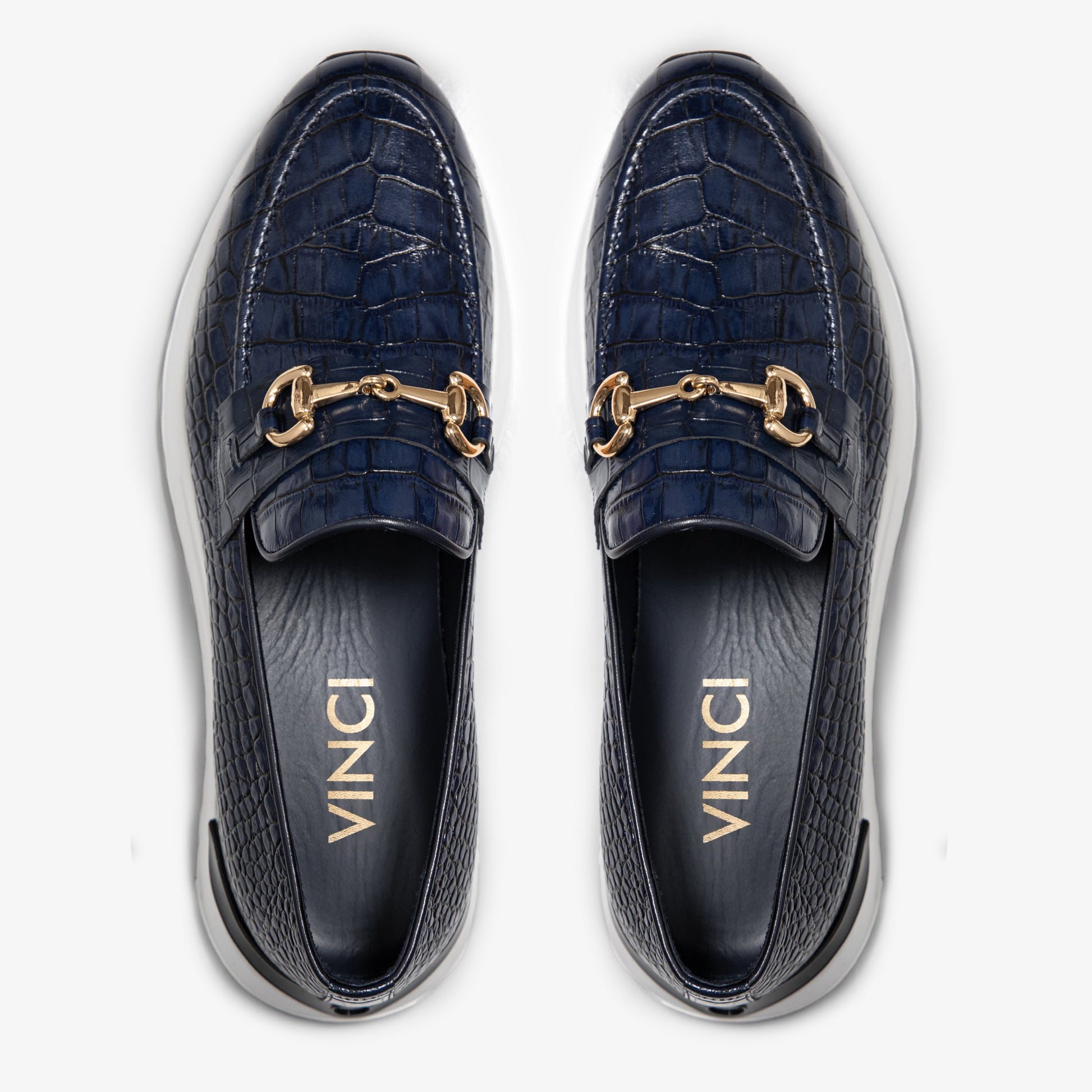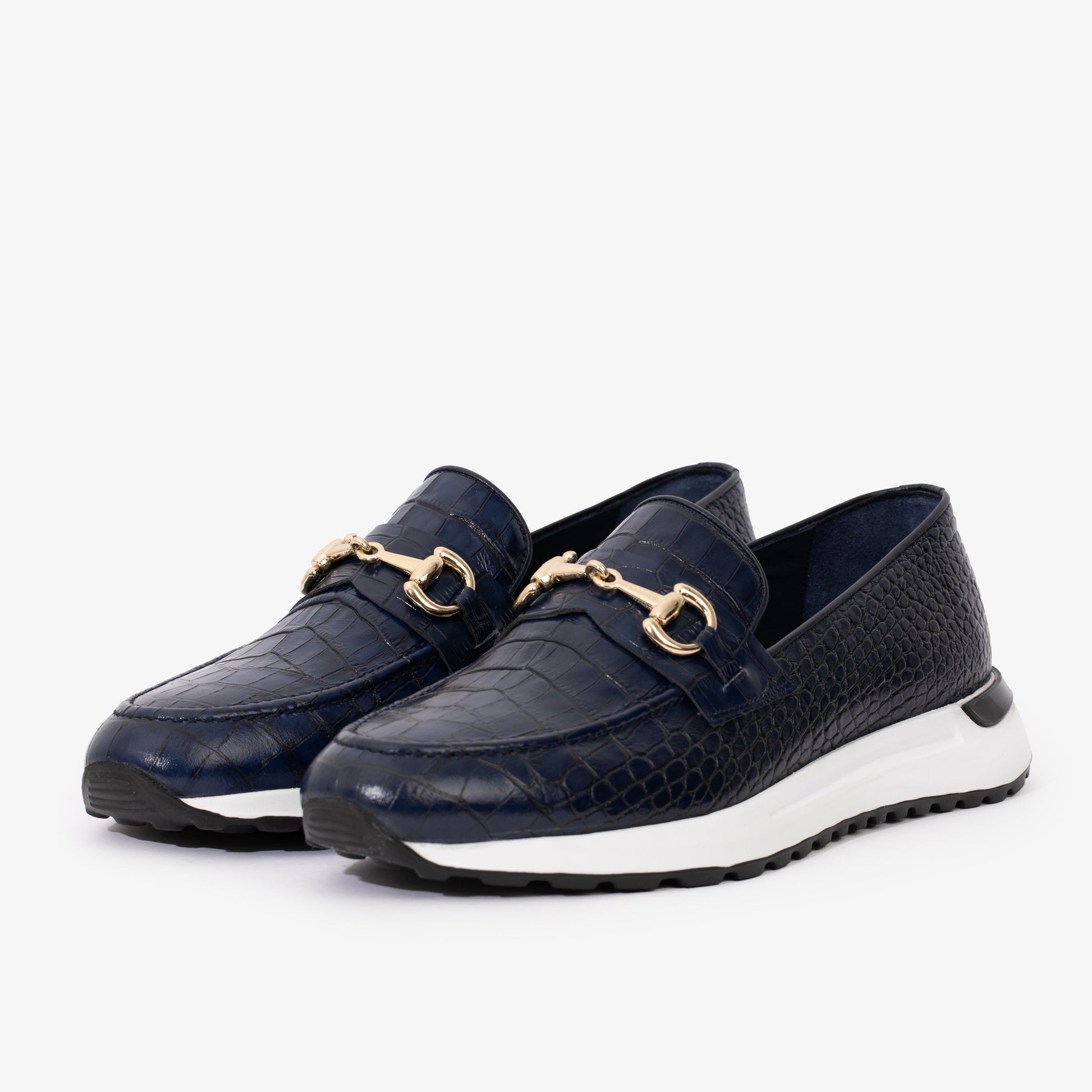 Stylish Design Fusion: The Padova Navy Leather Men Sneaker represents a perfect blend of formal elegance and casual comfort. Its versatile design allows you to transition seamlessly from formal occasions to casual outings without compromising on style. The crocodile-embossed leather and gold buckle create a dynamic and luxurious aesthetic that elevates any outfit.
