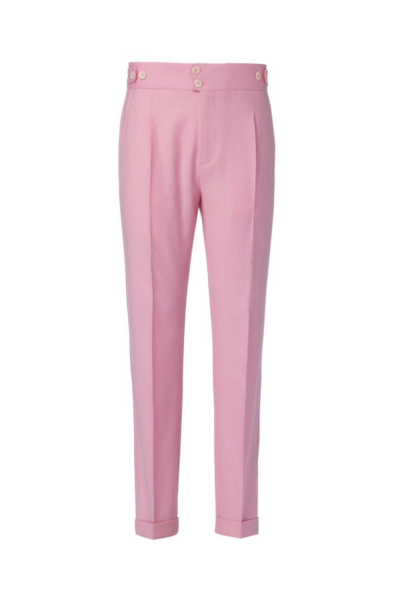 Meticulously tailored from 100% premium wool, these trousers offer a rich texture, superb drape, and exceptional breathability, ensuring both comfort and a consistently polished appearance. The captivating pink hue provides a unique and sophisticated alternative to traditional colors, while every detail speaks to our commitment to superior bespoke artistry: