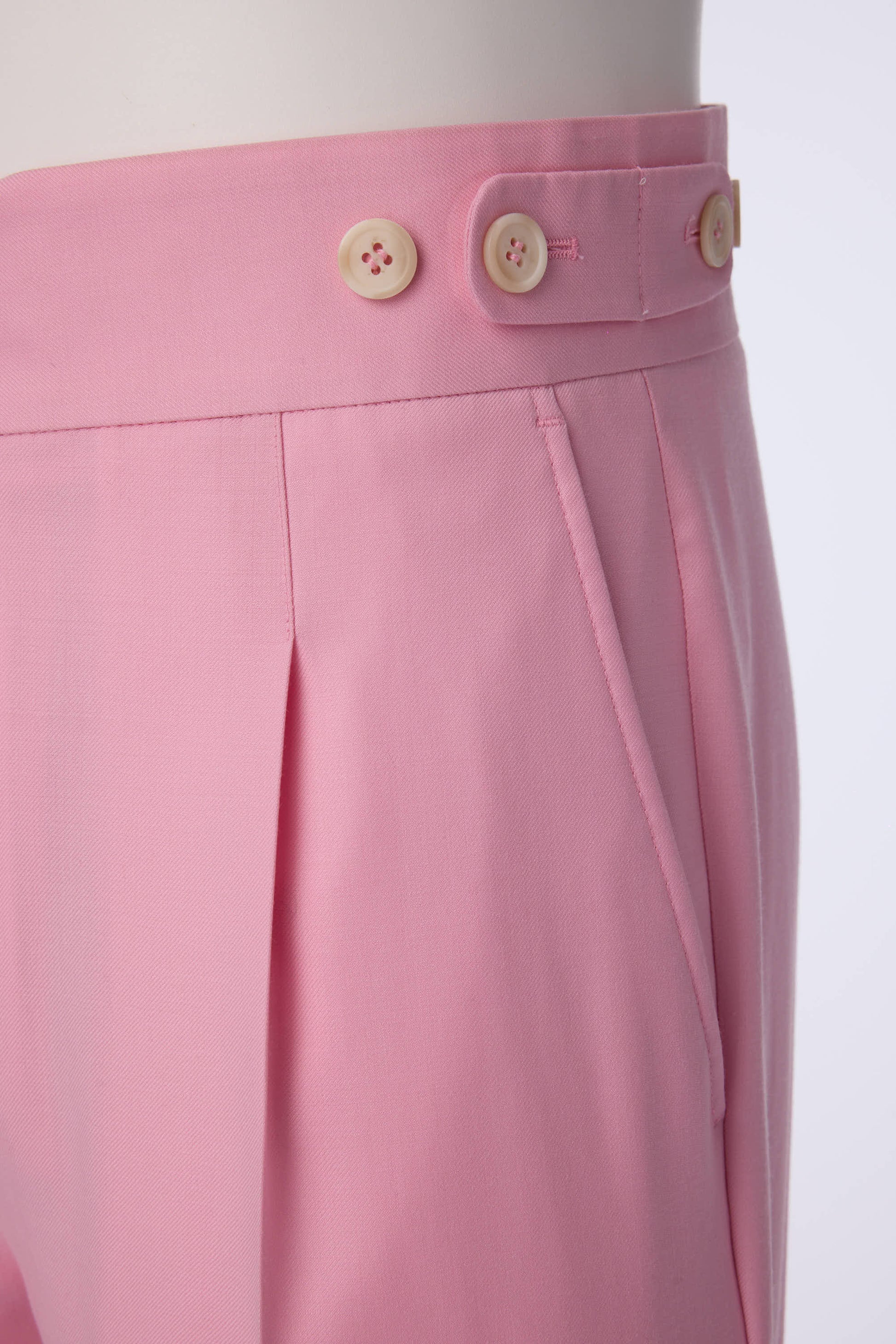 - Button Side Adjusters: Elegant button side adjusters provide a clean, belt-free waistline and allow for precise, customizable fit, enhancing the trousers' sophisticated aesthetic.