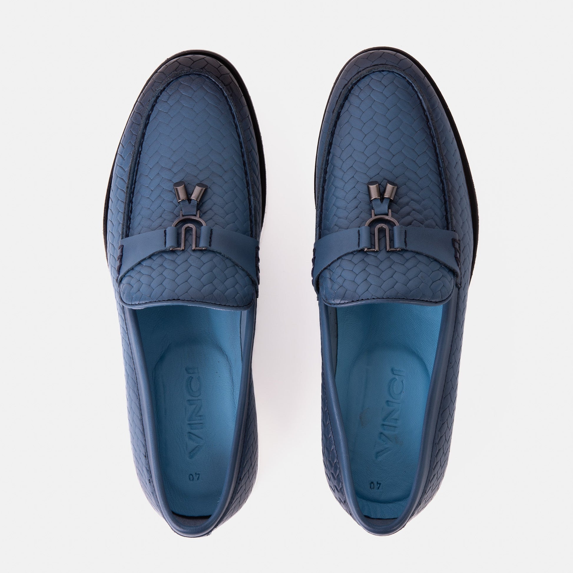 Distinctive Fur-Like Pattern: The furan-like pattern on the upper, created by weaving Jean Blue leather, adds a distinctive touch to the loafer, making it a standout piece.