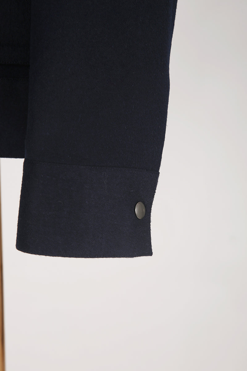 A cold-weather essential crafted for uncompromising warmth and understated elegance, this heavyweight wool-cashmere jacket blends heritage insulation with modern functionality. The dense 380g/m² wool-silk-cashmere weave creates a wind-resistant barrier, while the clean silhouette ensures versatility across urban and rural settings.